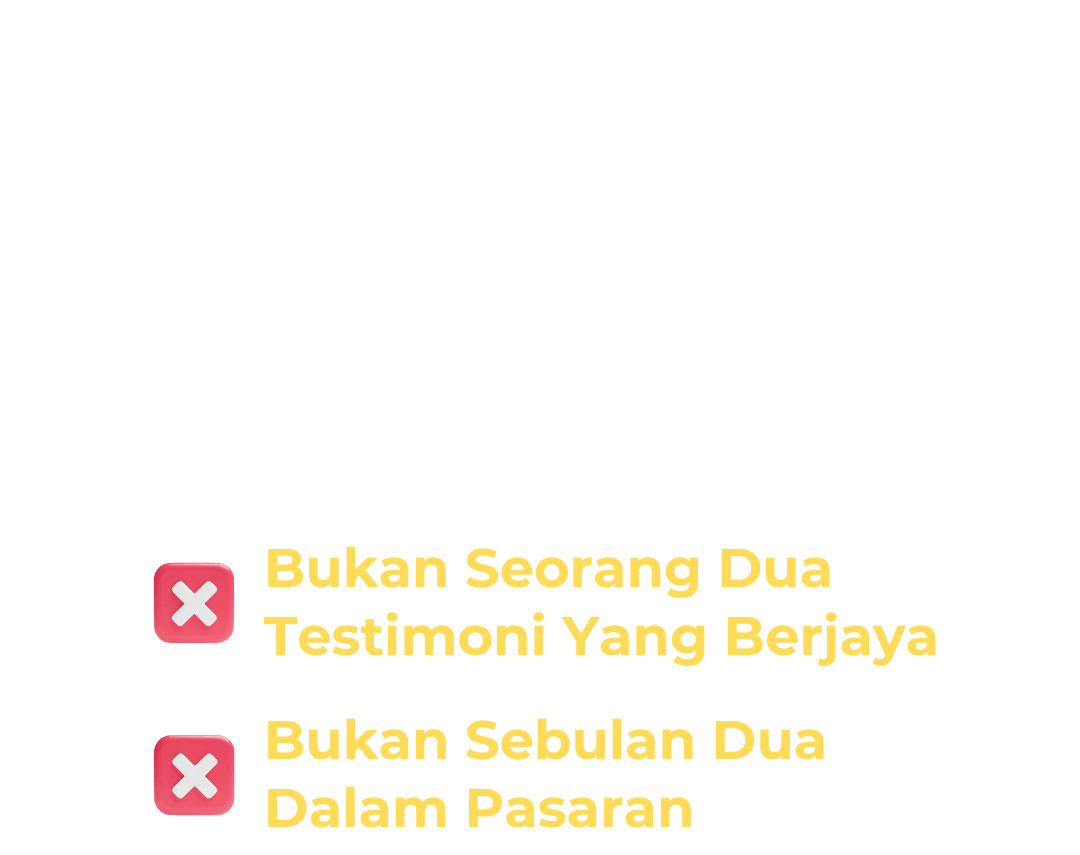 Sebarang pembelian di luar dari website kami tidak tanggung sebarang risiko.
