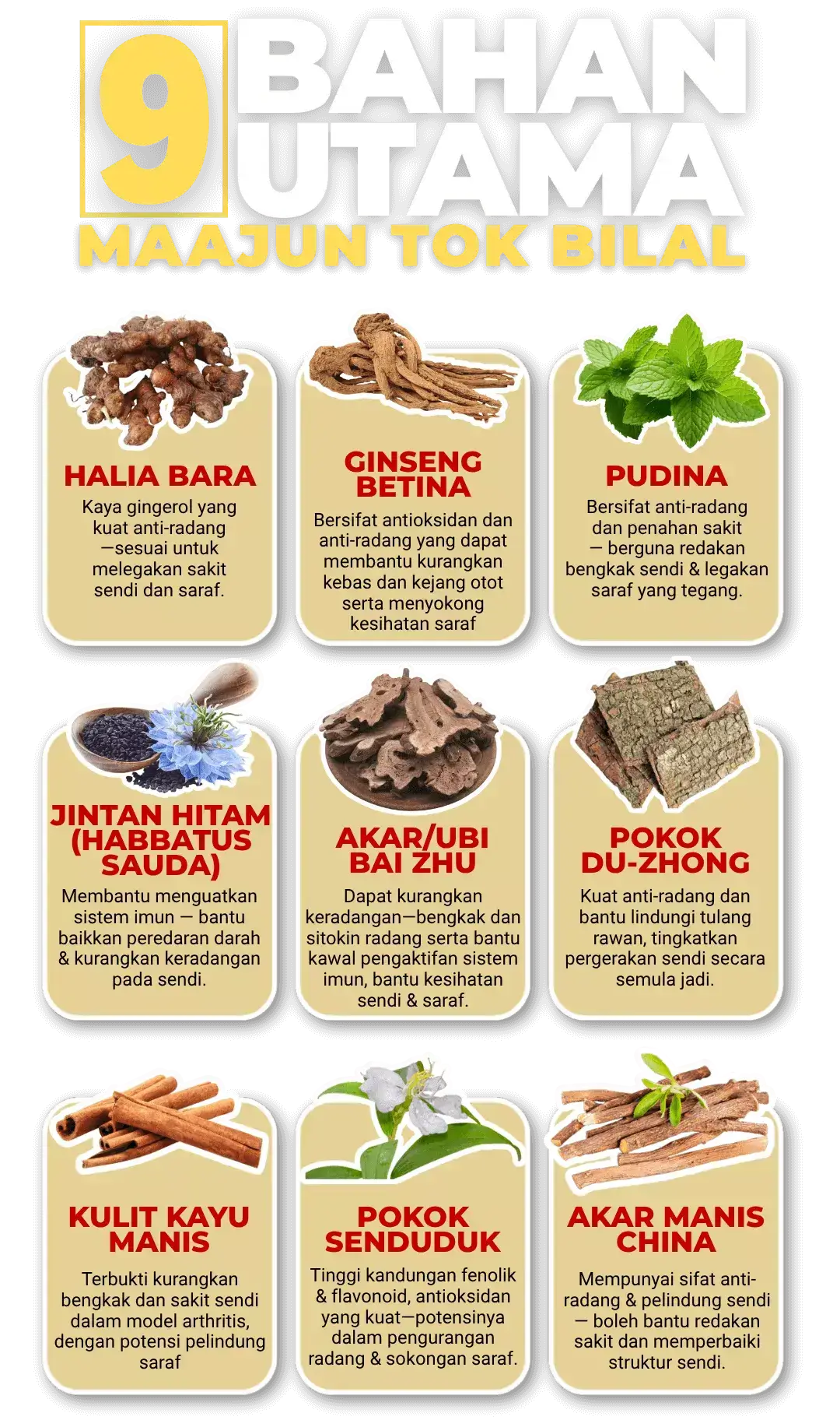 Bagi anda yang mengalami masalah saraf & sendi, sakit lutut, angin, kebas kebas dan seangkatan dengannya, anda digalakkan untuk amalkan Maajun Tok Bilal Ni.